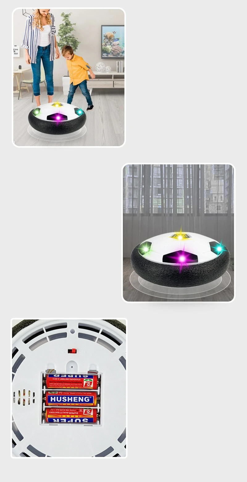 It has a built-in rotary motor. As long as the battery is installed, turned on the switch, the motor will run, and the air will flow, forming an air cushion under the football to make it float.